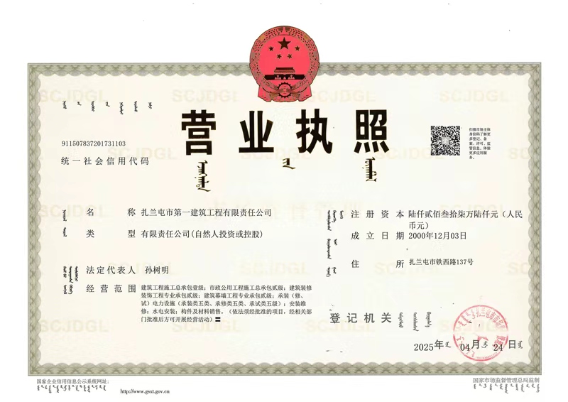 公司的前身是扎蘭屯市第一建筑工程公司,始建于1958年3月1日。2000年12月轉(zhuǎn)制為有限責(zé)任公司,是房屋建筑工程施工總承包壹級、房地產(chǎn)開發(fā)貳級、市政公用工程施工總承包貳級、商品砼攪拌站、建筑裝修裝飾工程專業(yè)承包貳級、起重設(shè)備安裝工程專業(yè)承包貳級企業(yè)。具有建筑、房地產(chǎn)開發(fā)、市政工程、商品砼、裝修裝飾等工程的綜合施工能力。公司有五十余年的建筑施工管理經(jīng)驗(yàn)。